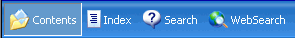 The online Help includes the following left-hand panes. To access each pane, click the Contents, Index or Search button on the toolbar.